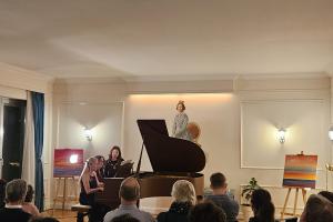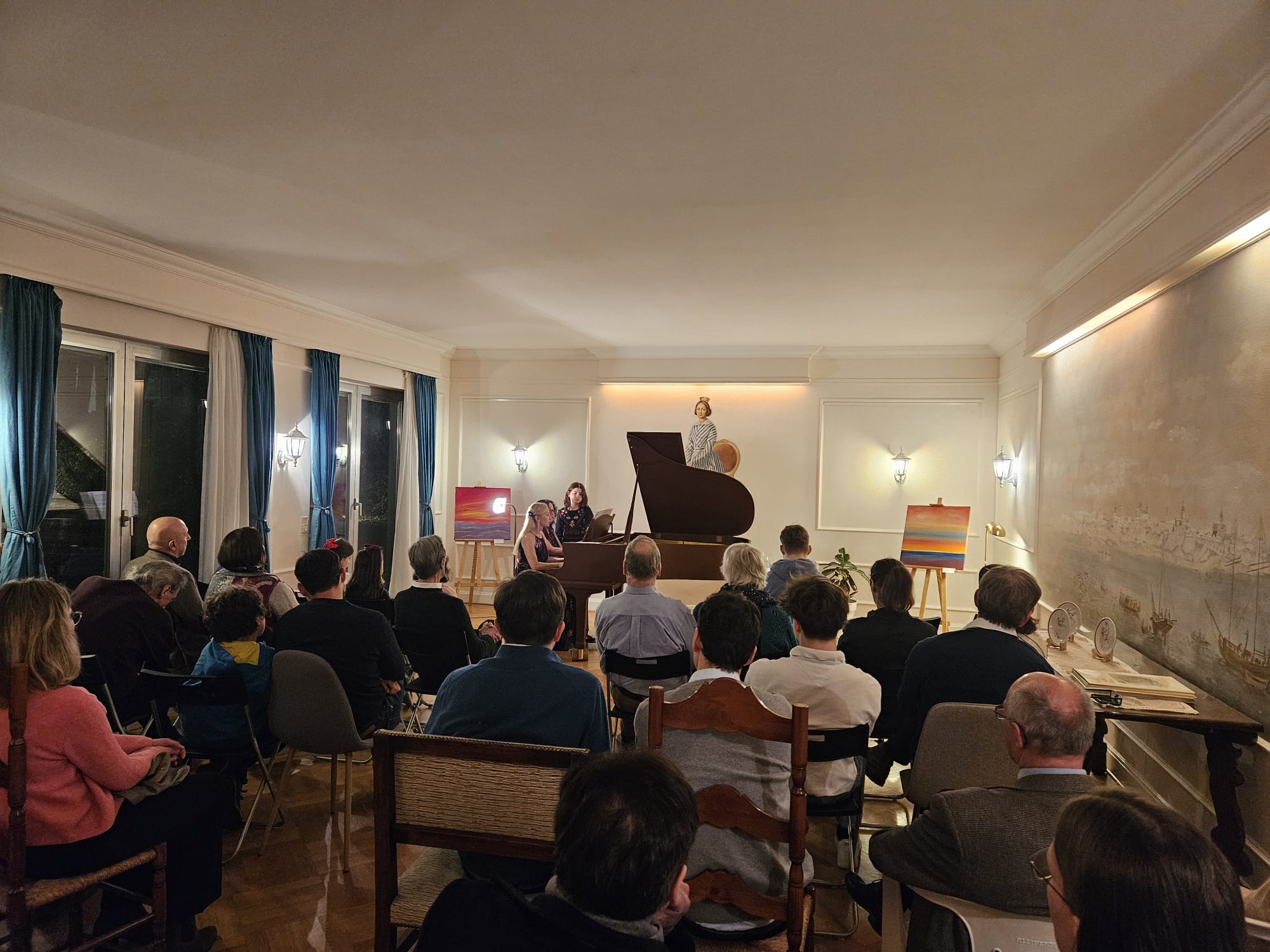 El concierto fue acompañado por una degustación de vinos de las bodegas La Celia, Trapiche y Rutini, y una muestra de arte plástico de Silke Pokladek.