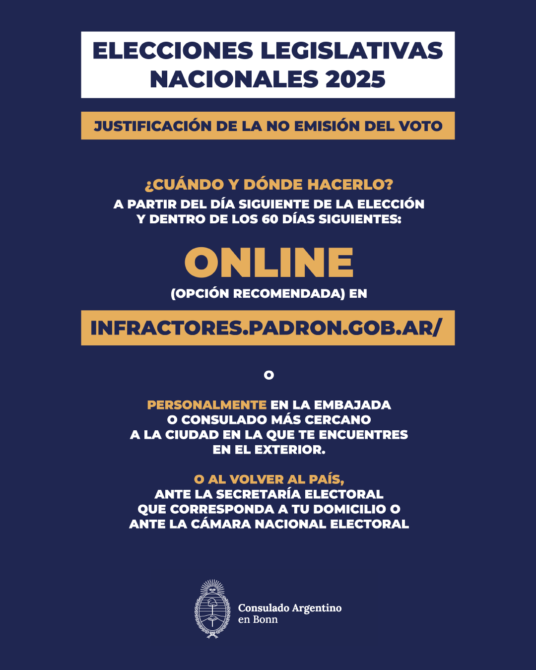 1. Presencialmente, el día de la elección (26.10.2025 de 8 a 18 hs) en nuestro Consulado, o